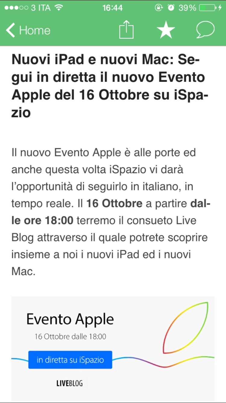 Si abbandonerà completamente il sito mobile di iSpazio per la lettura dei singoli articoli, preferendo il caricamento dei contenuti all’interno dell’applicazione stessa. L’effetto sarà un caricamento ultra-veloce e la possibilità di leggerli anche in landscape.
