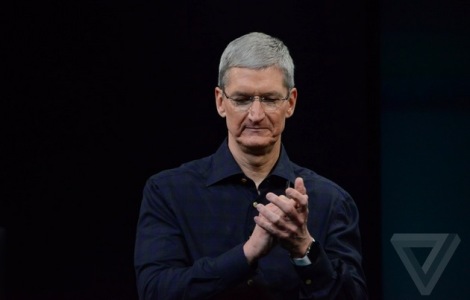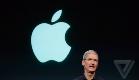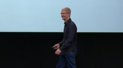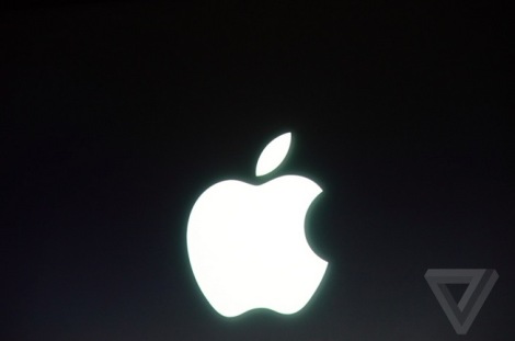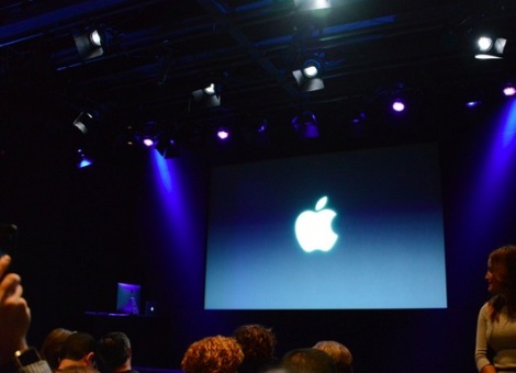 Il Logo Apple viene proiettato sul Palco mentre in sottofondo viene riprodotto il brano Elevate di St. Lucia