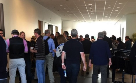 come avrete visto dalle immagini, i giornalisti sono in fila da molto tempo. Quest'anno la coda è più lunga degli altri eventi e si possono sentire diverse lamentele a riguardo.